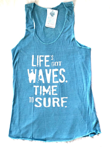 "Life's Got Waves. Time to Surf." Women's Eco Blend Racerback Tanks